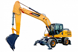 Маневренность и скорость движения – вот главный конек колесных экскаваторов. Возможность передвижения по дорогам общего пользования своим ходом без повреждения асфальтового покрытия делают эти экскаваторы незаменимыми на городских территориях. Спаренные колеса передней и задней осей более эффективно распределяют нагрузку, а постоянный полный привод поможет пробраться к рабочему участку даже по сложным рельефам и грунтам. Удобные капоты широко раскрываются, открывая оператору превосходный доступ к обслуживаемым агрегатам. В колесных экскаваторах Yuchai используются двигатели собственного производства. Используемые модели имеют множество наград международного уровня за надежность и экономичность. Для привода исполнительных механизмов используется гидромотор Kawasaki, считающийся одним из лучших решений с точки зрения качества и высокого КПД. Комфортная кабина с большим пространством для ног и увеличенным объемом воздуха оснащается системой контроля и управления с цветным 7 дюймовым экраном.