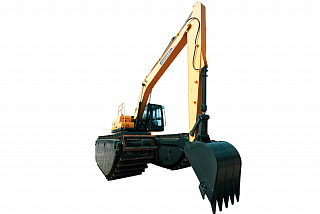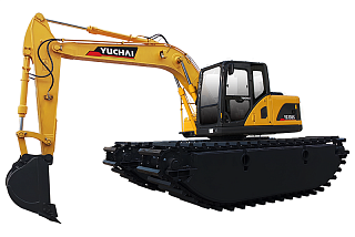 В экстремальных условиях заболоченной местности или даже в акваториях озер и рек выполнять работы могут только очень специализированные экскаваторы. Модели экскаваторов Yuchai с суффиксом S в названии действительно могут преодолевать слабонесущие болотистые грунты и даже плавать. При этом в полной безопасности и при отличной устойчивости. Для обеспечения плавучести используются понтоны увеличенной высоты: например, для YC215S они 180 см глубиной. А для обеспечения еще большей устойчивости опционально могут быть применены дополнительные понтоны с упорно-фиксирующими ригелями. Дополнительные понтоны позволяют выгружать породу даже вбок, так как в плане экскаватор становится практически полностью квадратным. А упорные ригели – регулируются по глубине установки с помощью гидрофицированного приводного элемента, и упираясь в дно водоема фиксируют экскаватор на месте, увеличивая тем самым усилие копания. Также с упорными ригелями происходит лучшее черпание породы ковшом, тем самым увеличивая производительность. Кроме ковша на рукоять экскаватора может быть установлена гидравлическая помпа и иной земснаряд. Кроме того, опционально рукоять и стрела могут быть изготовлены в длинномерной опции.