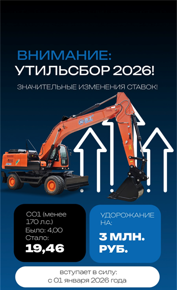 На рынке спецтехники грядут серьёзные изменения. Согласно обновлённым государственным нормативам, с 1 января 2026 года ставка утилизационного сбора для колёсных экскаваторов увеличивается с 4,00 до 19,46. Такой скачок приведёт к заметному росту себестоимости машин, что уже вызывает обеспокоенность у производителей, дилеров и покупателей.